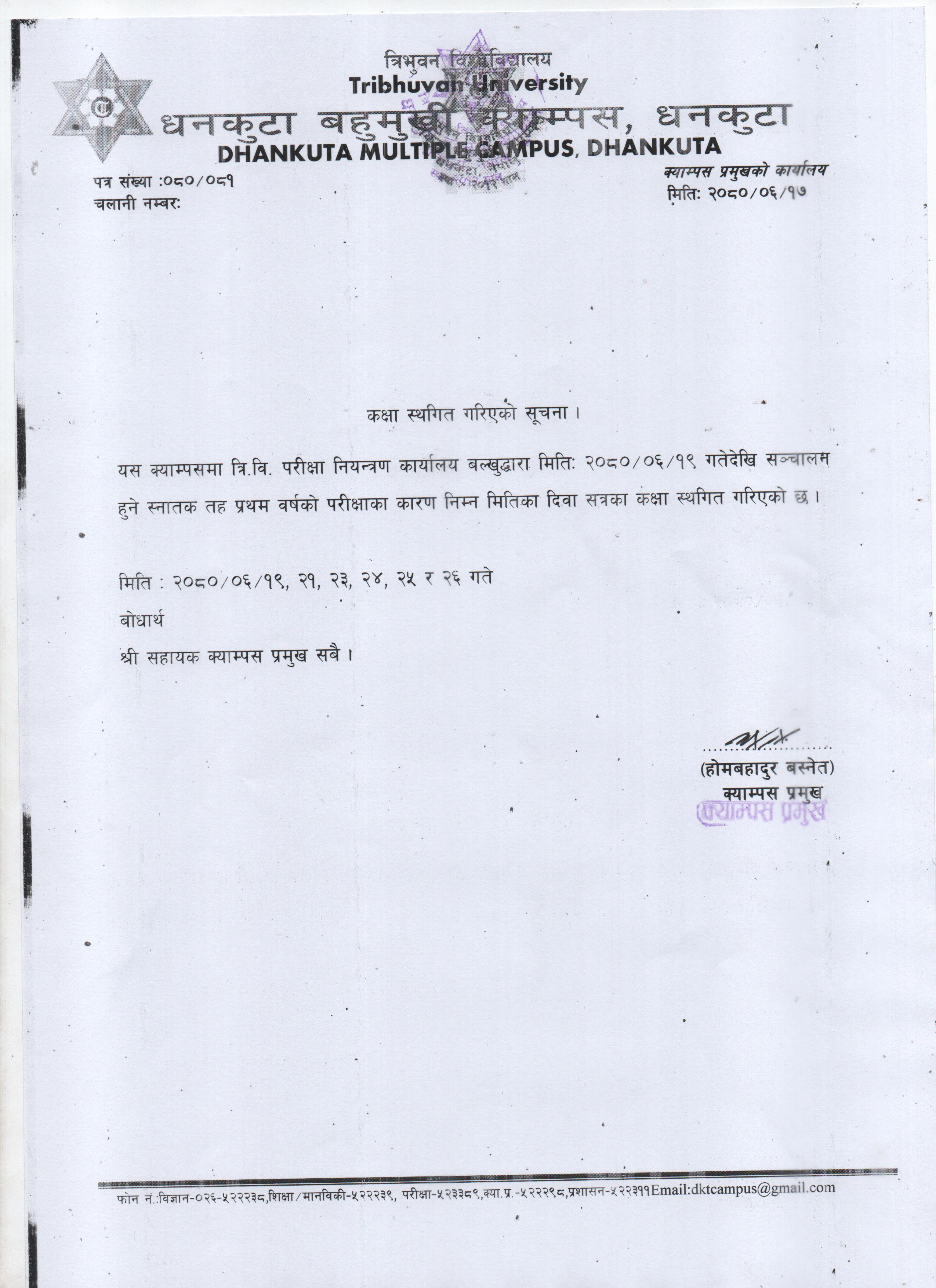 कक्षा स्थगित गरिएकाे सूचना ।