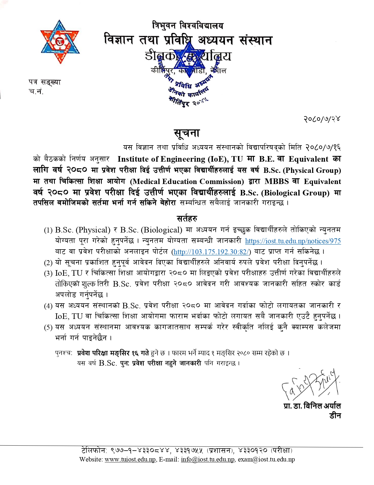 BSC. ENTRANCE DATE 2080.08.16 TIME : 12:OO O'CLOCK SATURDAY
