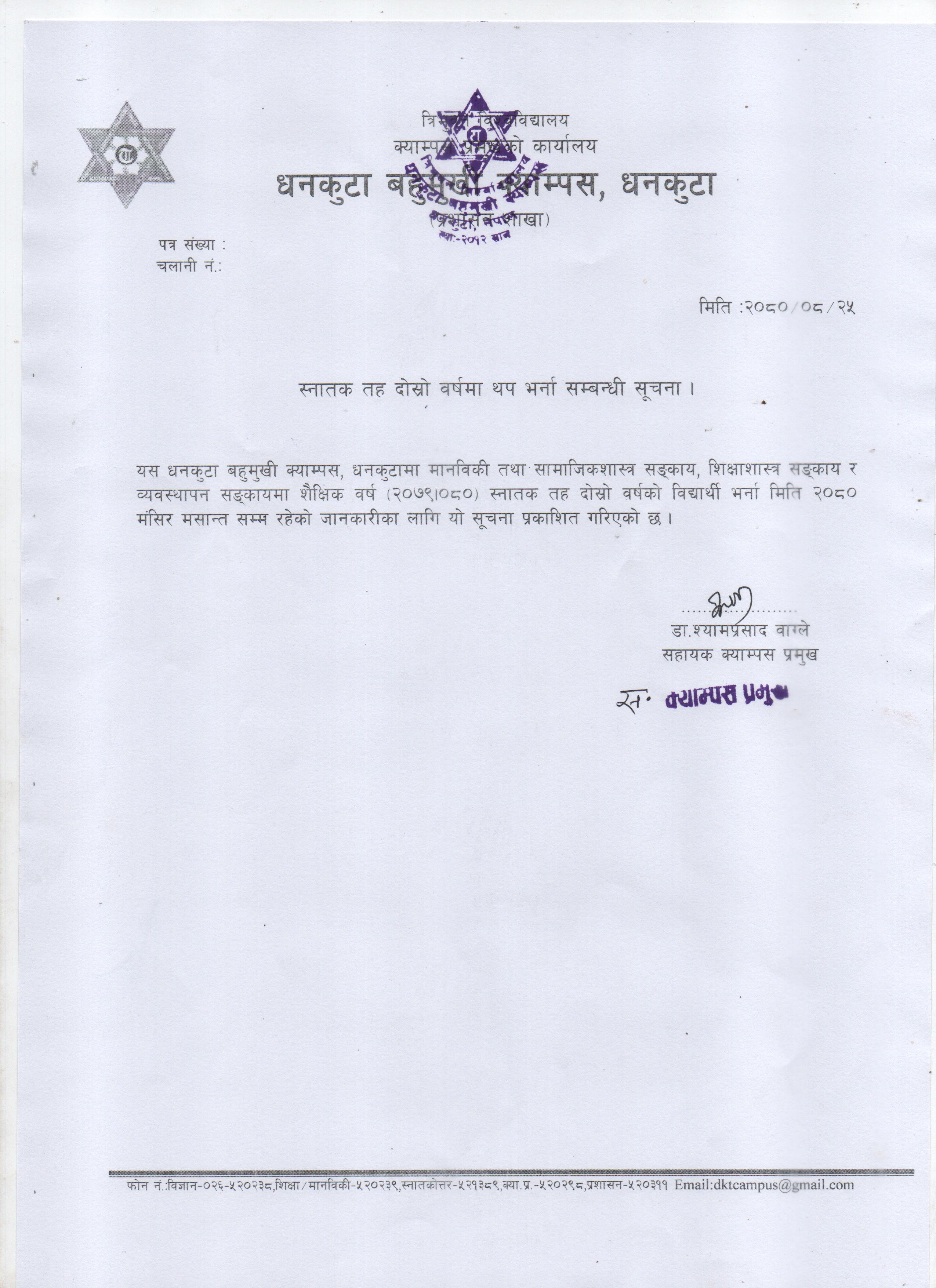 स्नातक तह दाेस्रा् वर्षमा भर्ना सम्बन्धी सूचन ।