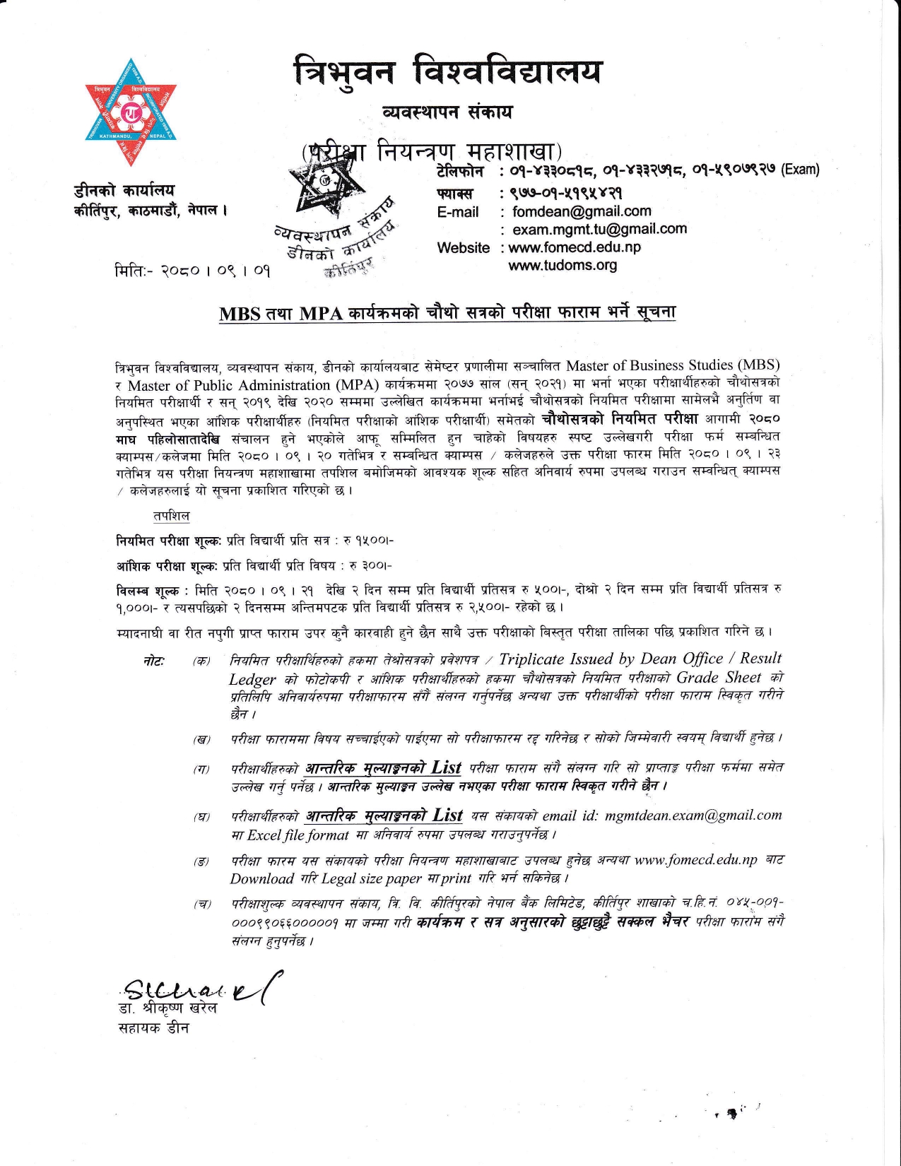 MBS 4TH SEMESTER REGULAR/BACK EXAMINATION FORM NOTICE