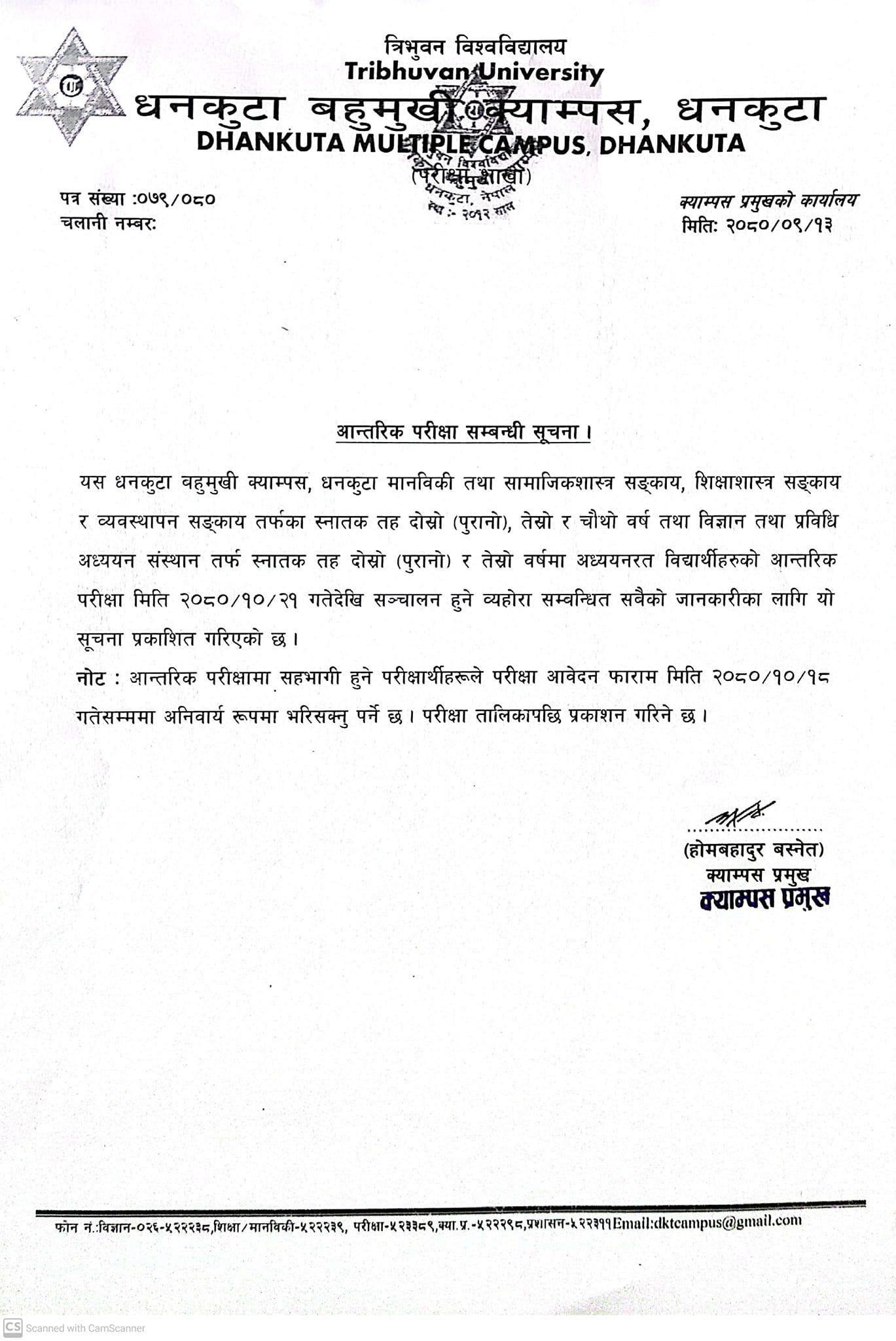 आन्तरिक परीक्षा सन्चालन सम्बन्धि सूचना ।