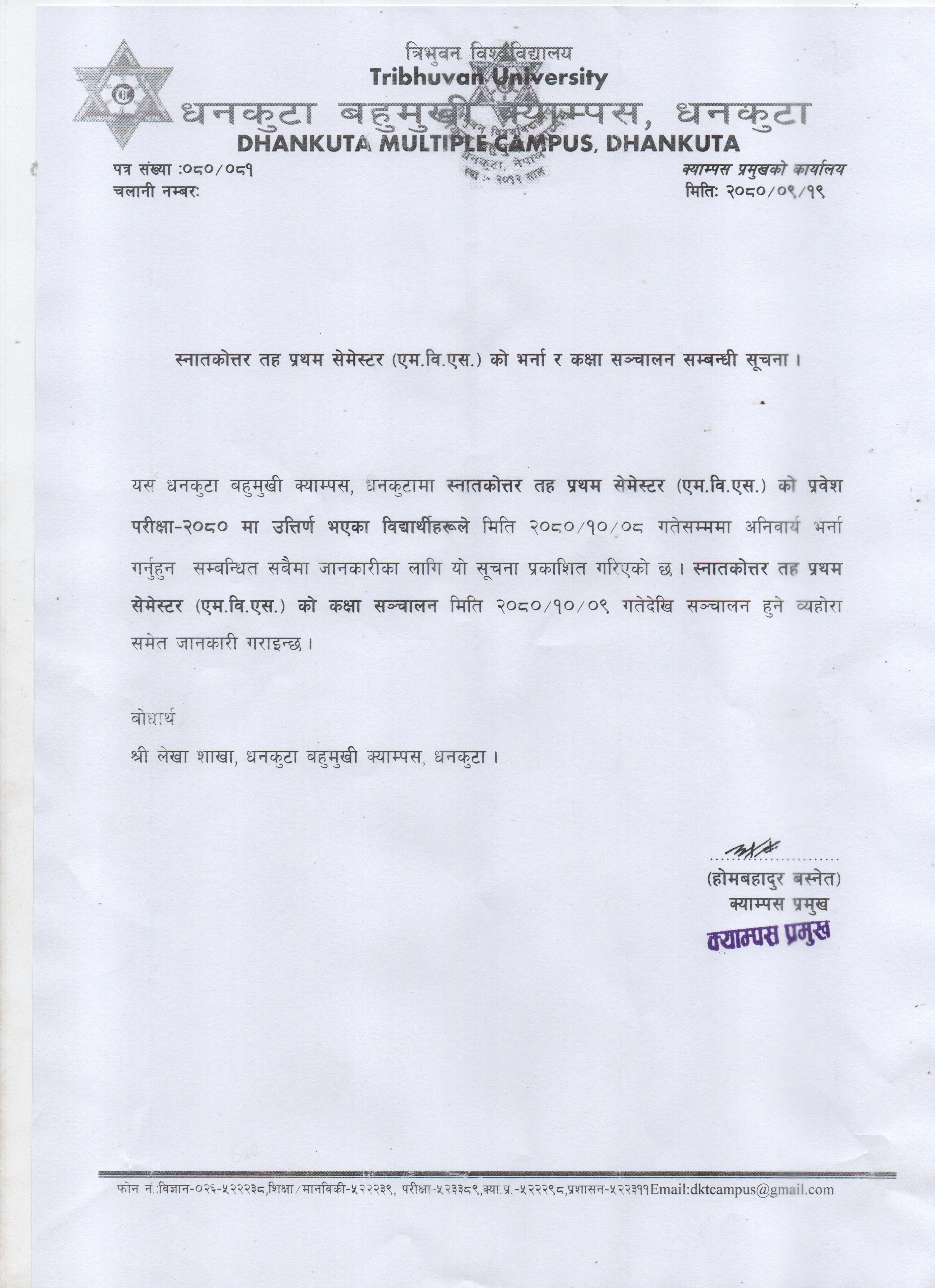 MBS प्रथम वर्षमा भर्ना तथा कक्षा सन्चालन सम्बन्धी सूचना ।