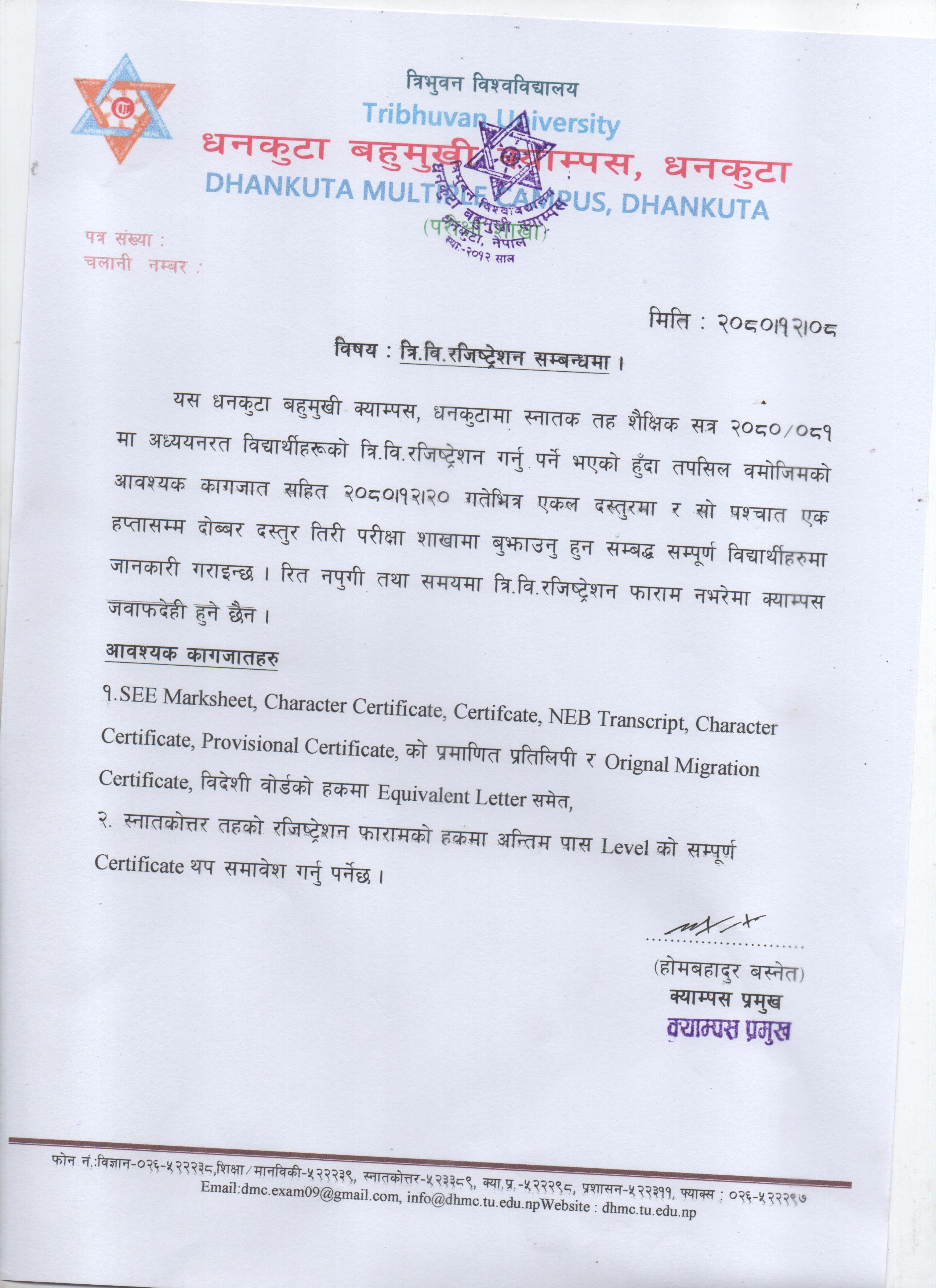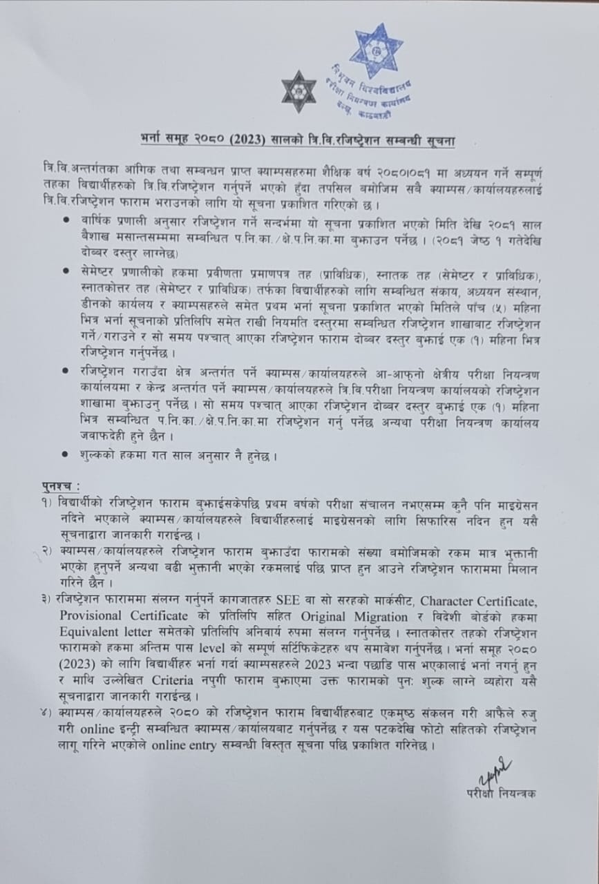 भर्ना समूह 2080/2023 सालकाे त्रि वि रजिष्ट्रेशन सम्बन्धी सूचना ।