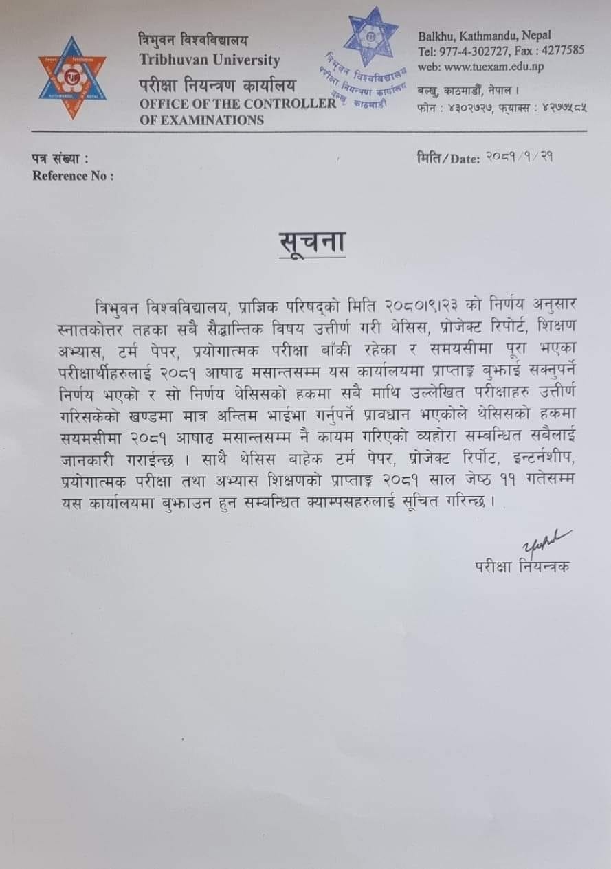 Thesis सम्बन्धी सूचना ।
