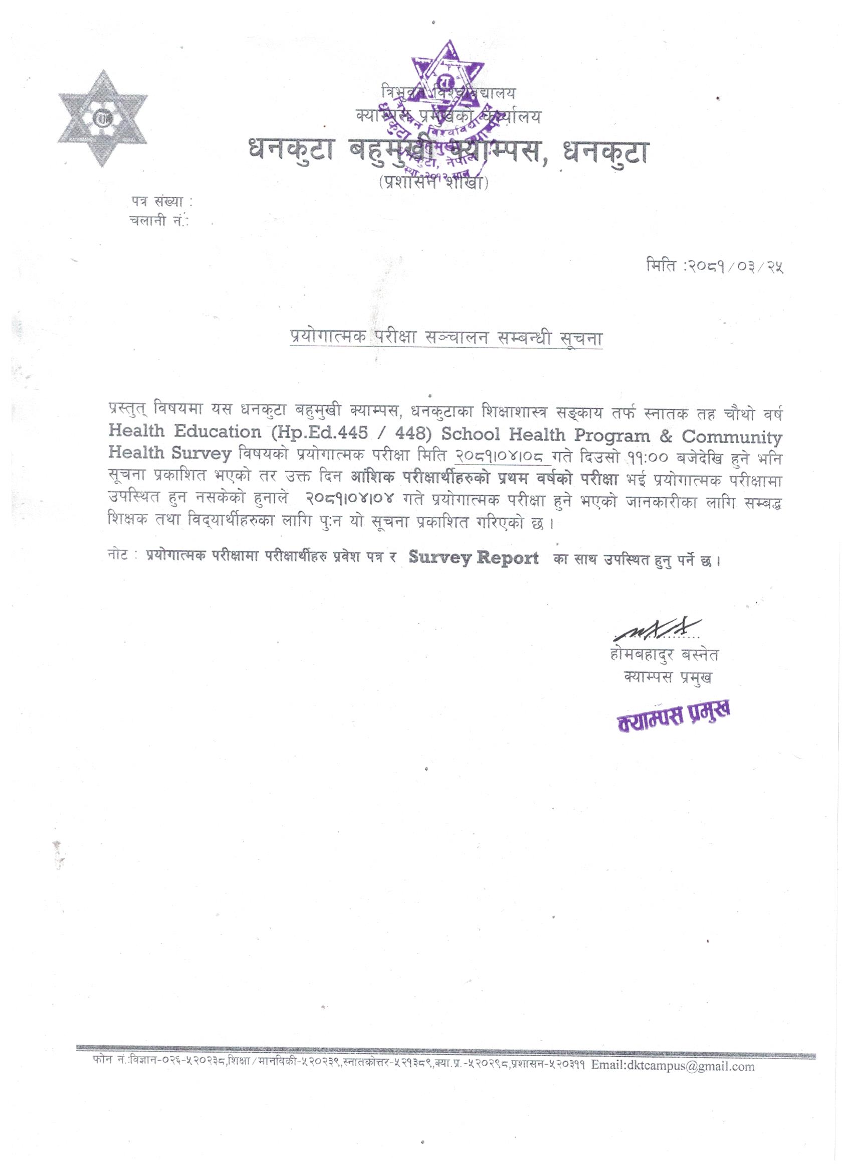 प्रयाेगात्मक परीक्षा सम्बन्धी सूचना ।