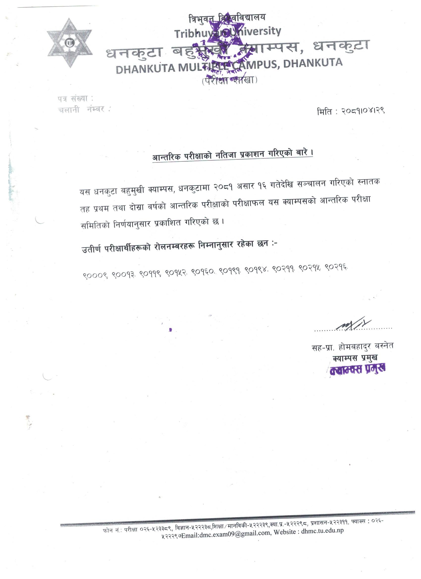 आन्तरिक परीक्षाकाे नतिजा प्रकाशन सम्बन्धमा 001