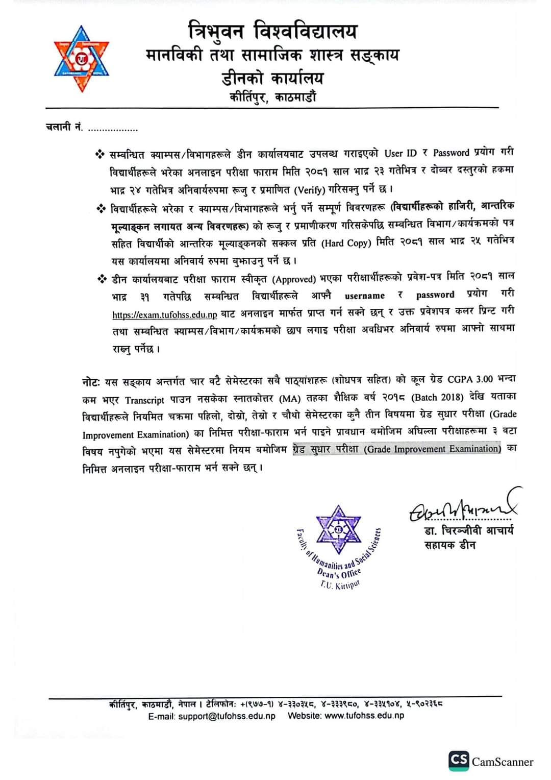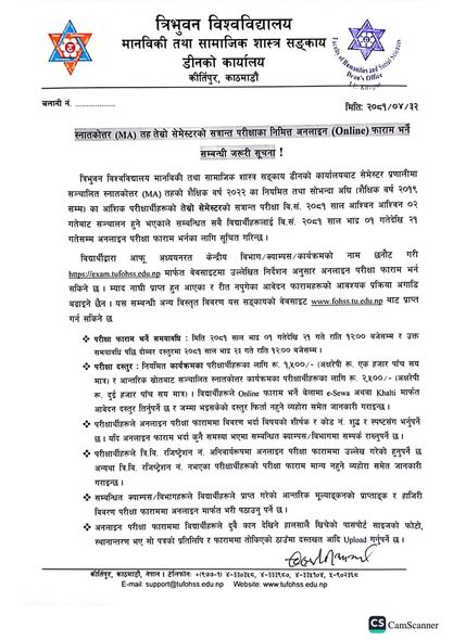 MA 3 rd Sem Exam Form Notice