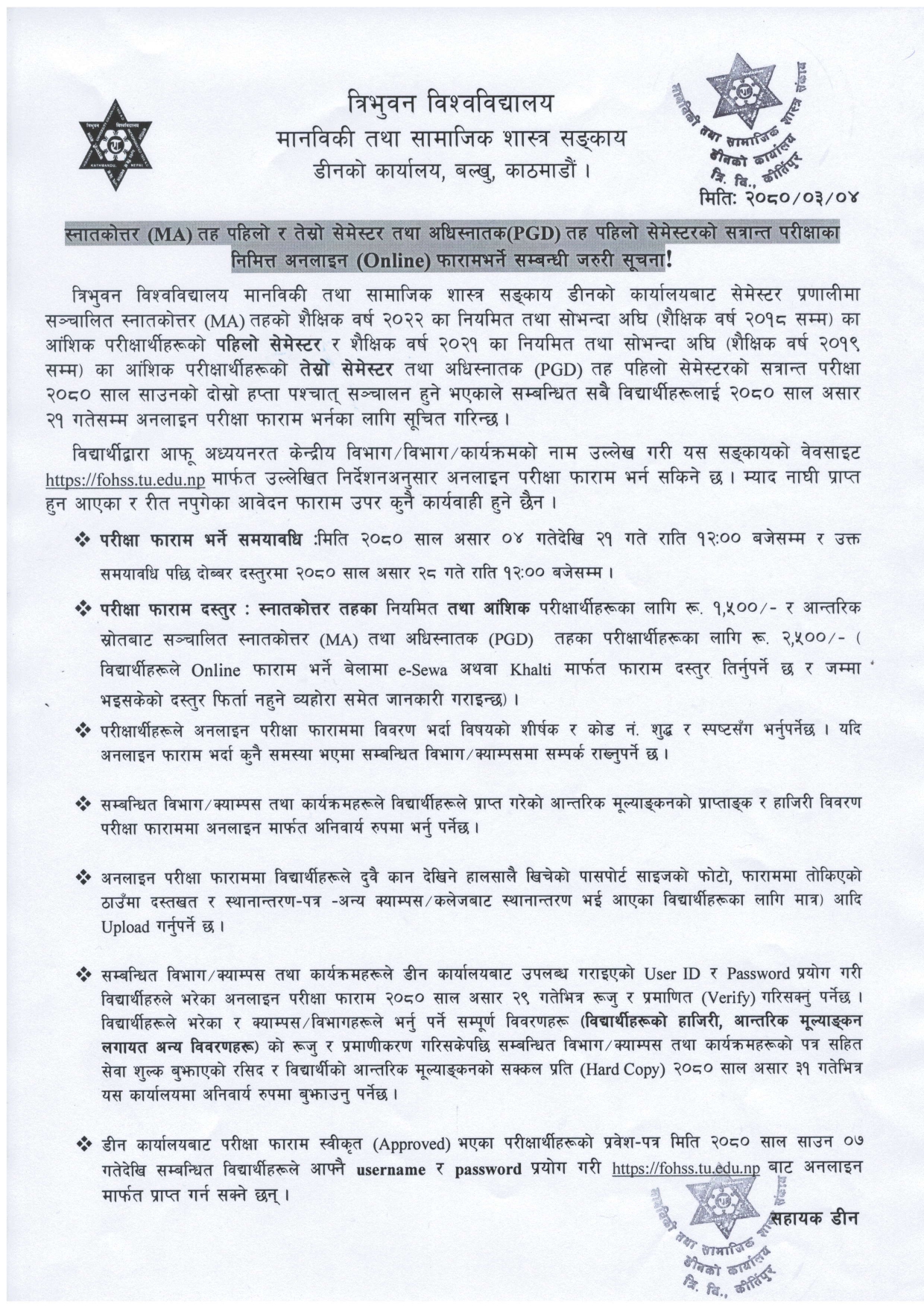 MA I AND III SEMESTER EXAM FORM NOTICE