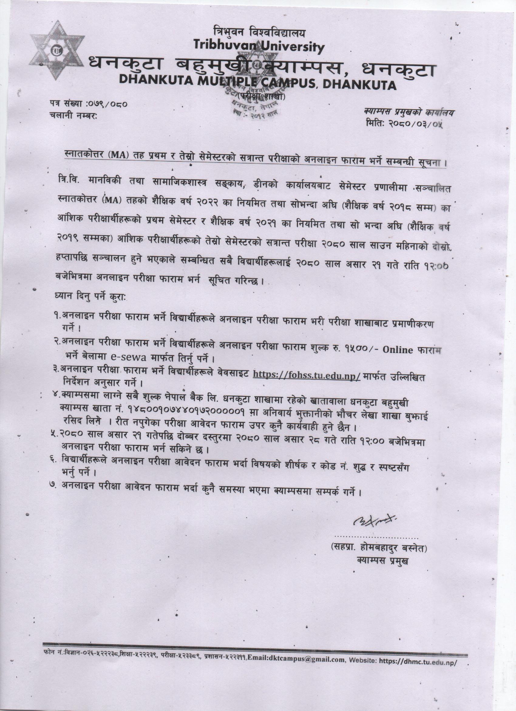 MA FIRST AND THIRD SEMESTER EXAMINATION FORM NOTICE