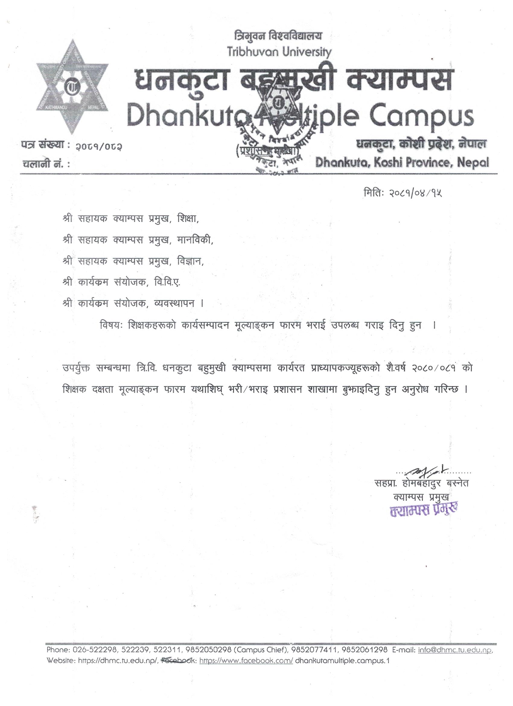 शिक्षक दक्षता मूल्याङ्कन फाराम सम्बन्धमा ।