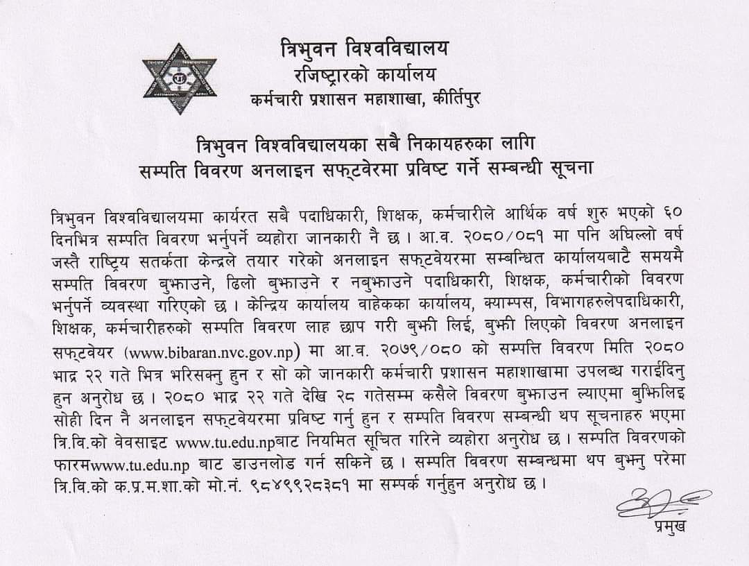 सम्पति विवरण भर्ने सम्बन्धी सूचना ।