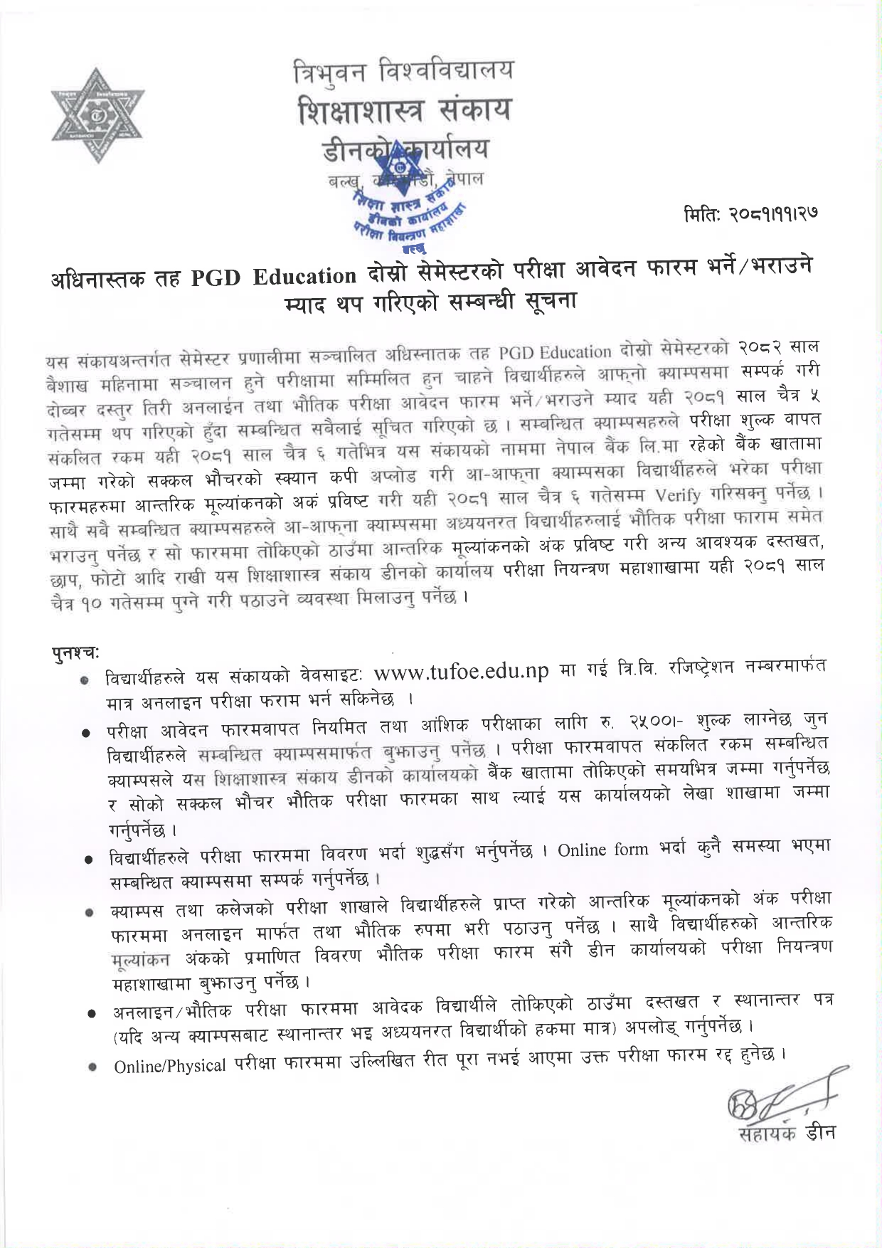 PGDE Second Semester Examination Form Date Extended