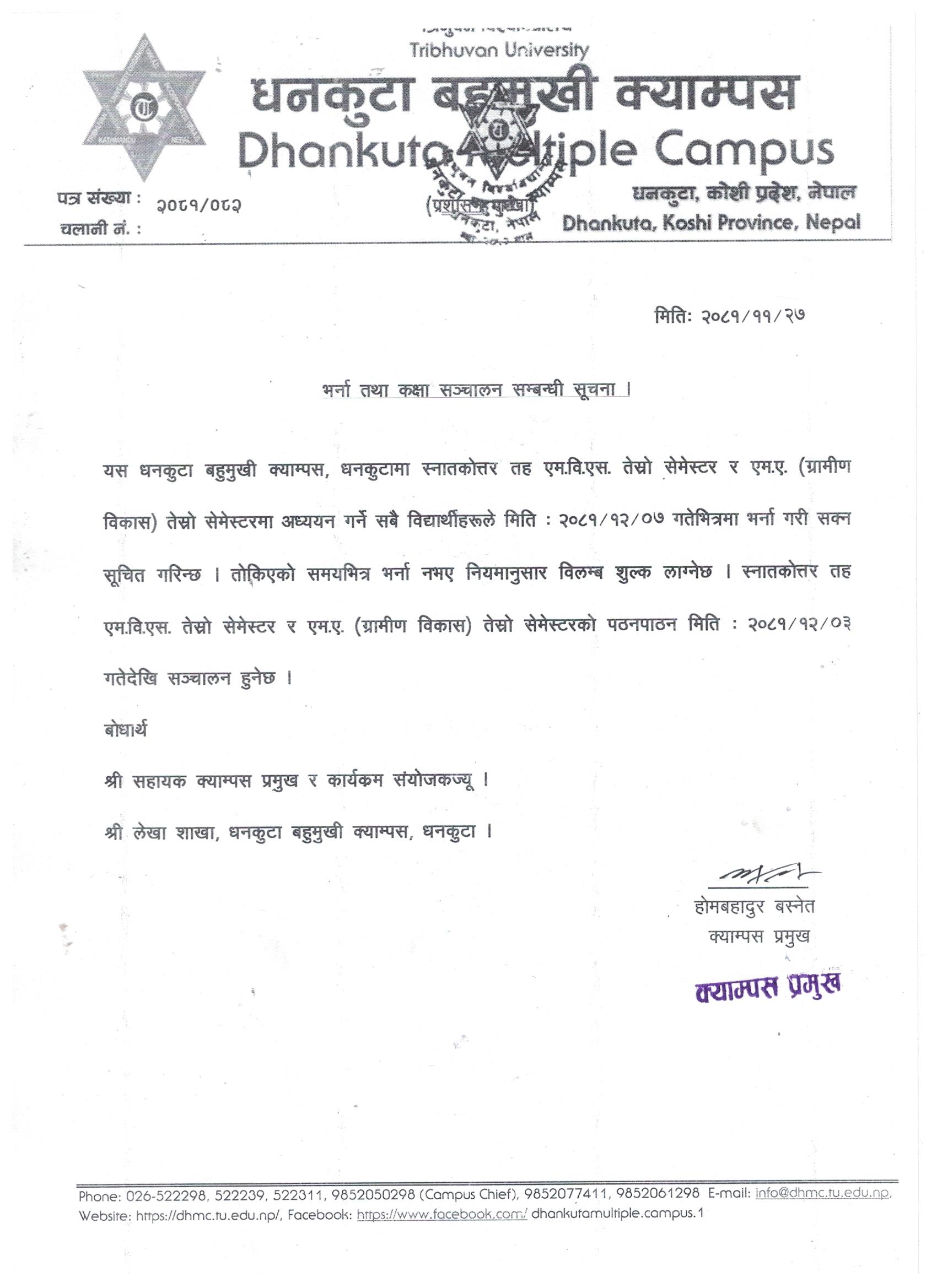भर्ना तथा कक्षा सन्चालन सम्बन्धमा ।