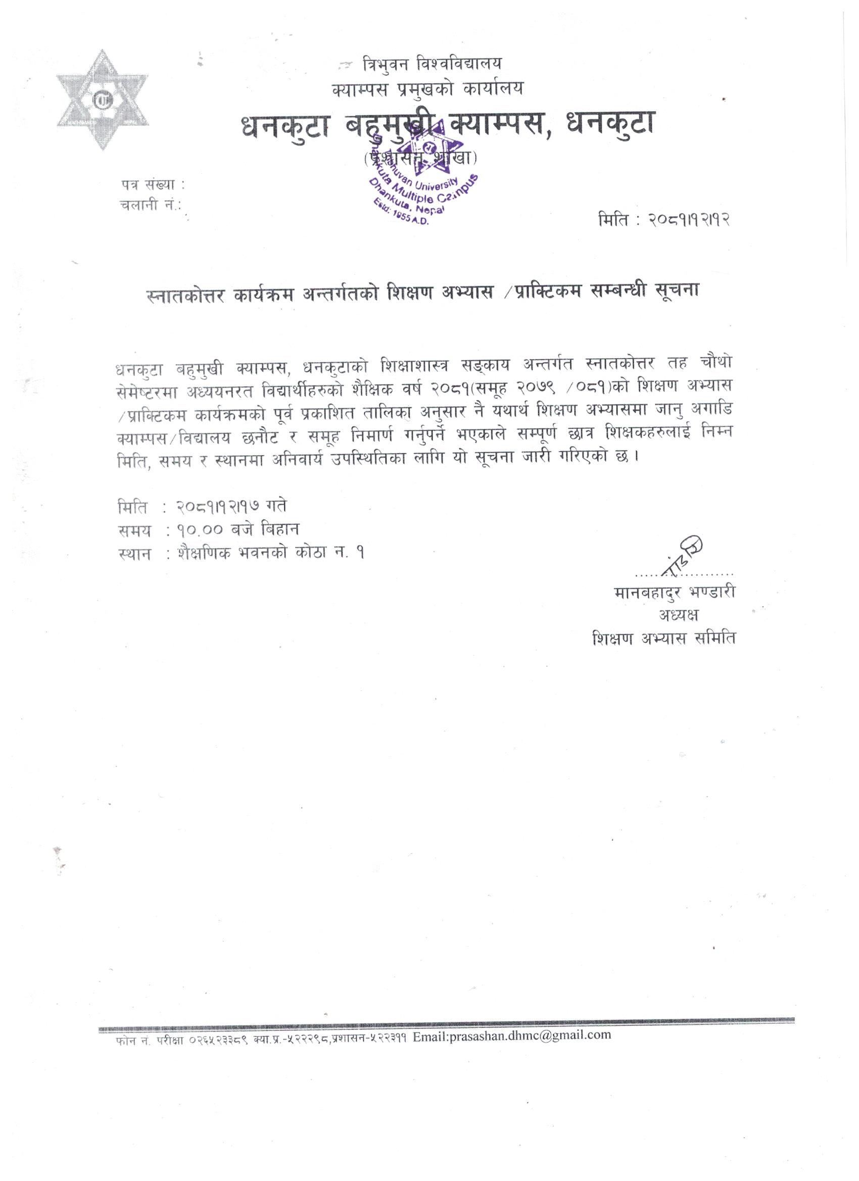 शिक्षण अभ्यास/प्राक्टिकम सम्बन्धमा ।