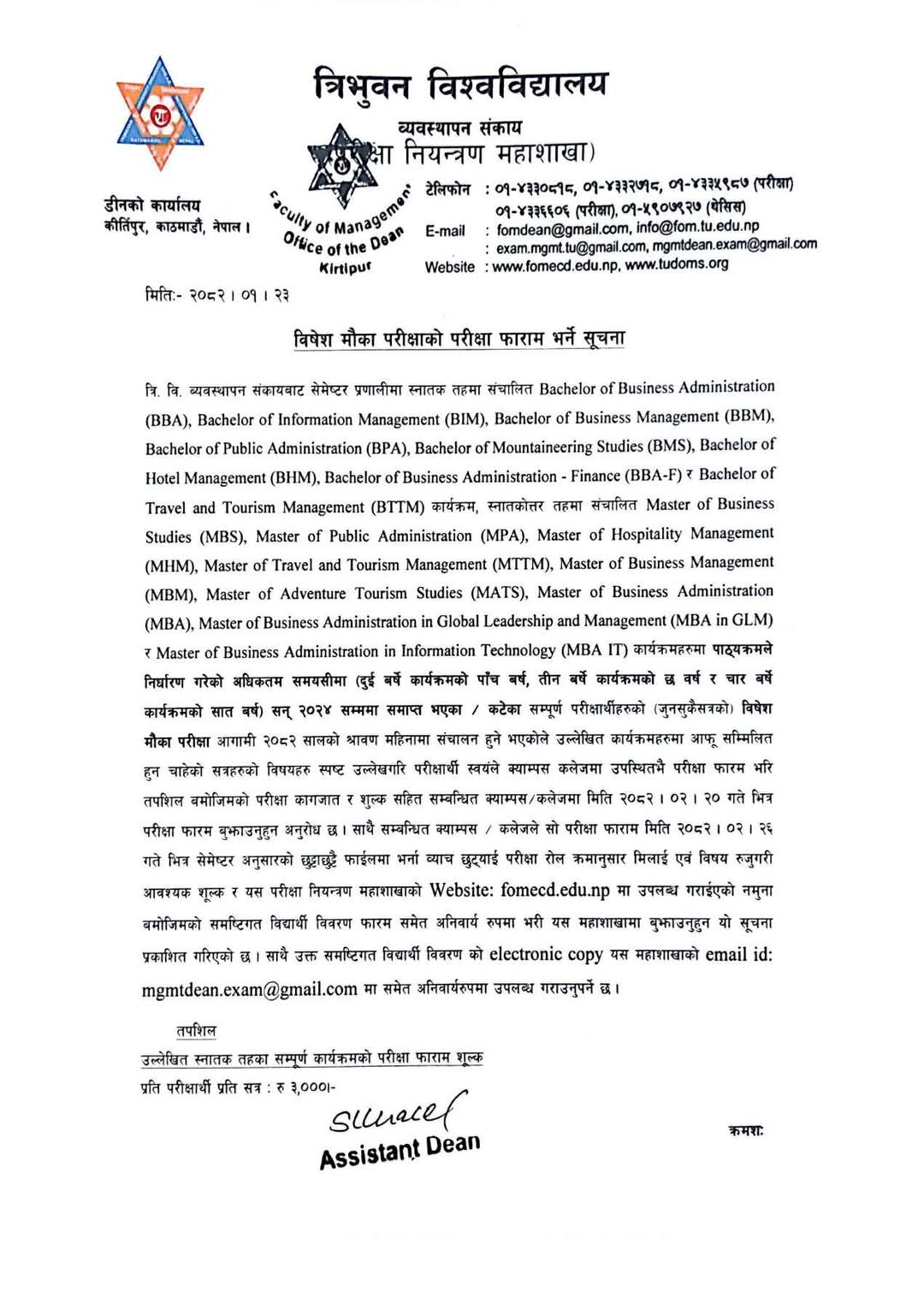 MBS Chance Exam Form Notice All Semester