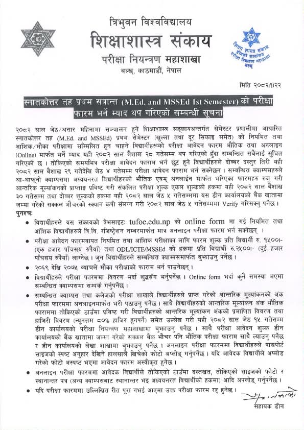 M.Ed.1st Semester Exam Form म्याद थप गरिएकाे सूचना