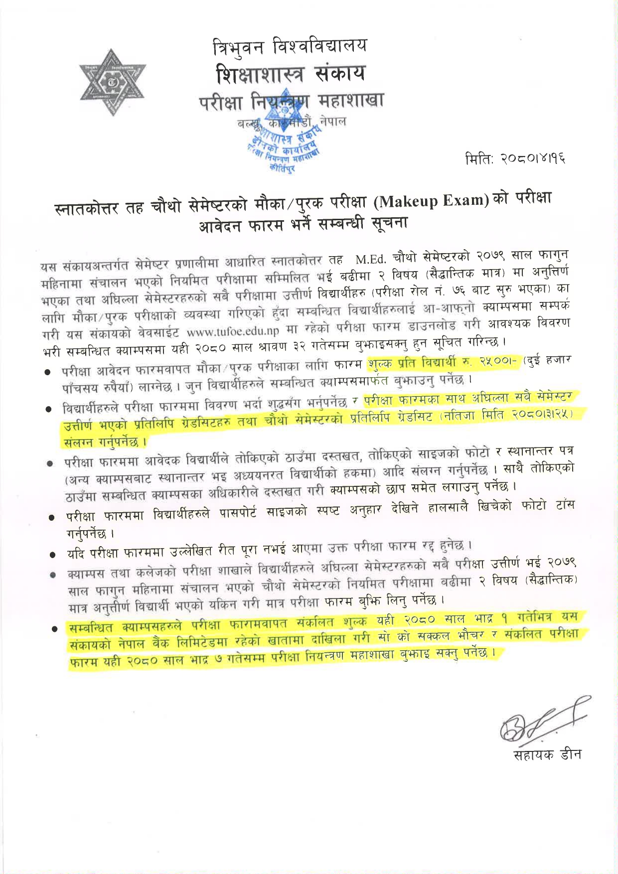 M.ED. FORTH SEMESTER CHANCE OR PARTIAL EXAMINATION FORM NOTICE
