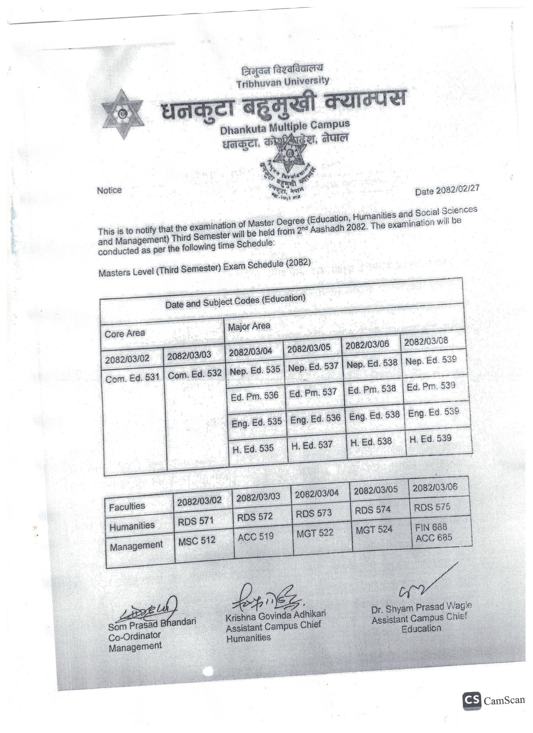 Internal Exam Schedule Master's