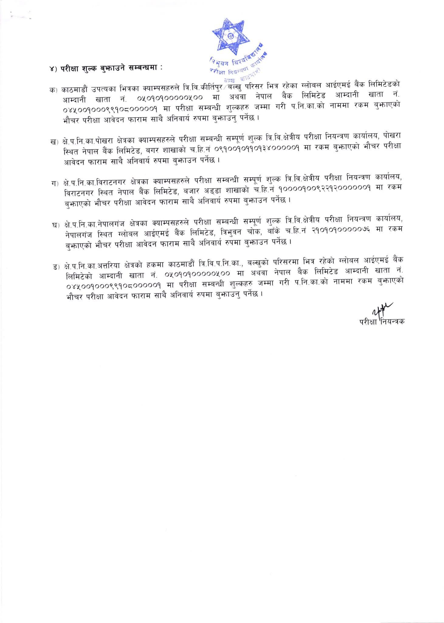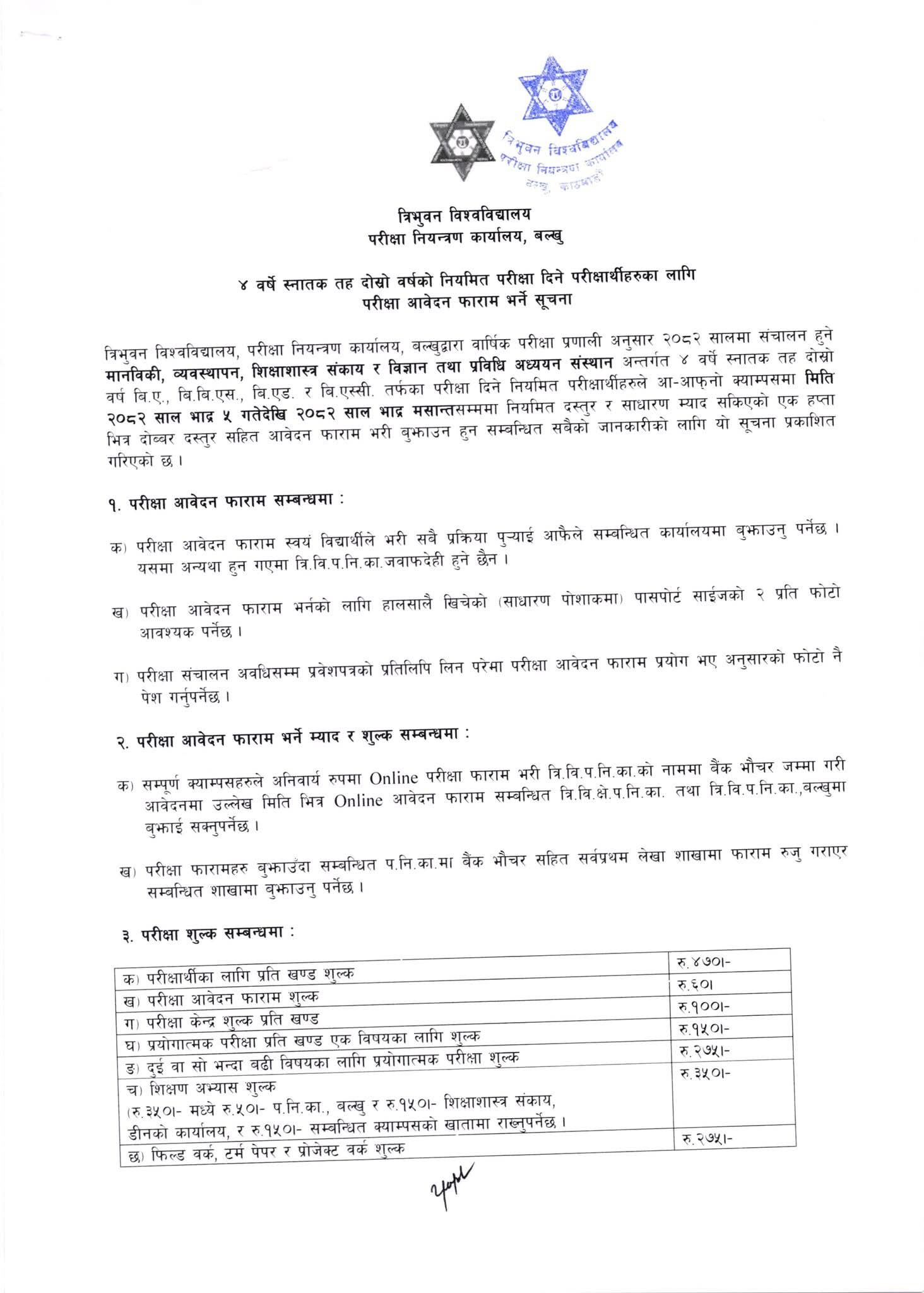 वर्षे स्नातक तह दोश्रो वर्षको नियमित परीक्षा दिने परीक्षार्थीहरुका लागि परीक्षा आवेदन फारम भर्ने सूचना: